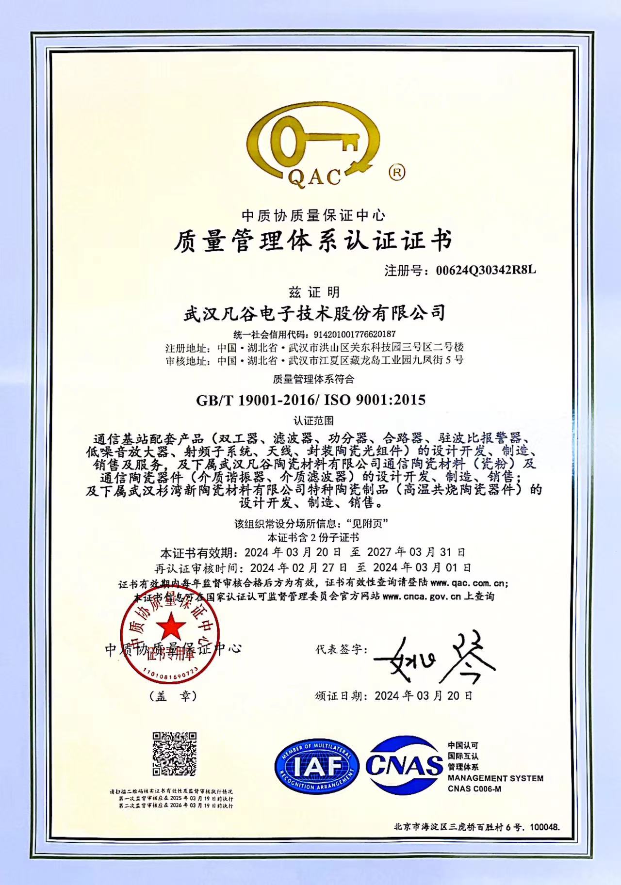 公司自2000年通過ISO9001質(zhì)量管理體系認(rèn)證,目前保持有ISO9001:2015管理體系認(rèn)證證書。